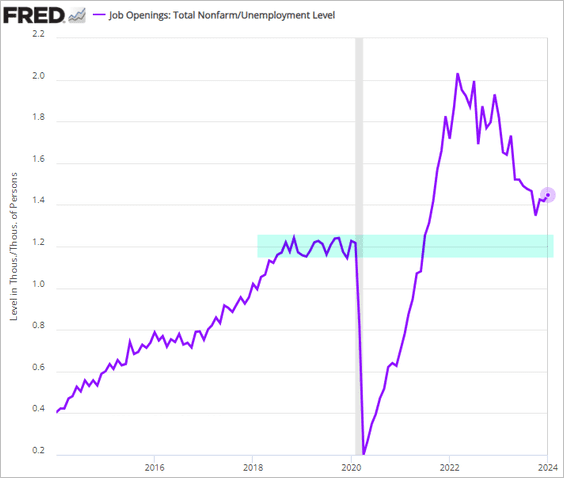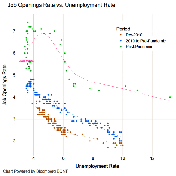 And here is the Beveridge curve. Both indicators suggest that the labor market is still tight.