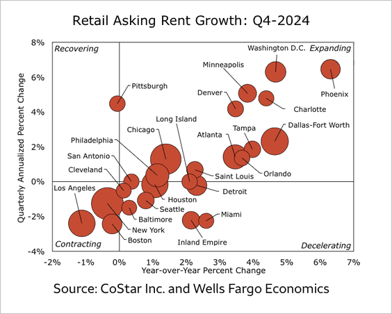 10) Here is a look at retail rent growth by city: