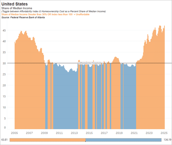 6) Homeownership cost as a share of median income: