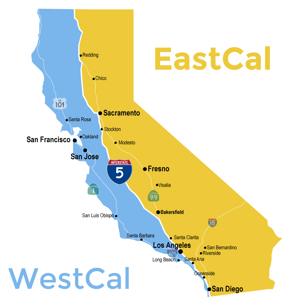 3) California update: Since about 2020, the population living east of I-5 has surpassed those living to the west.
