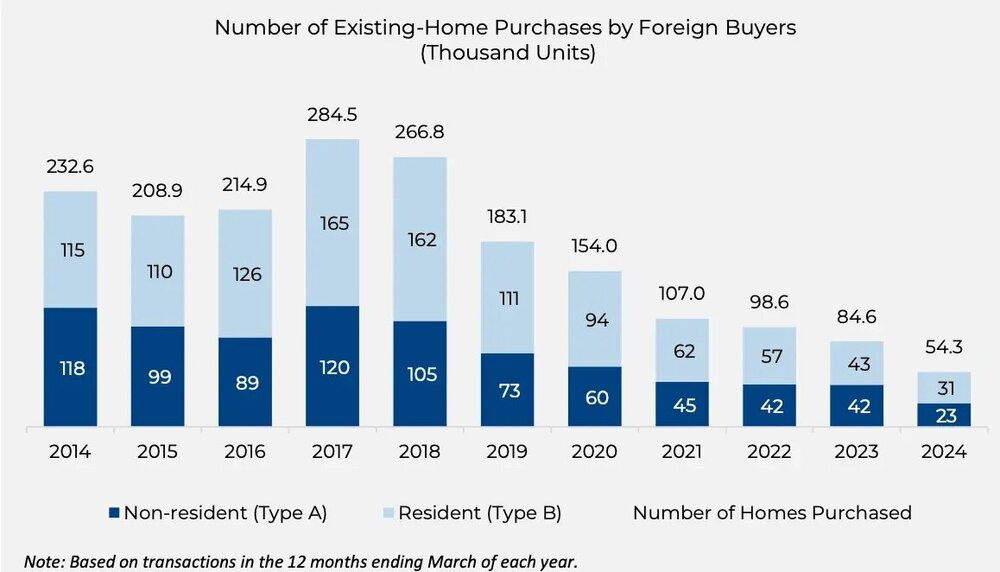 7) Foreign purchases of US homes have been slowing: