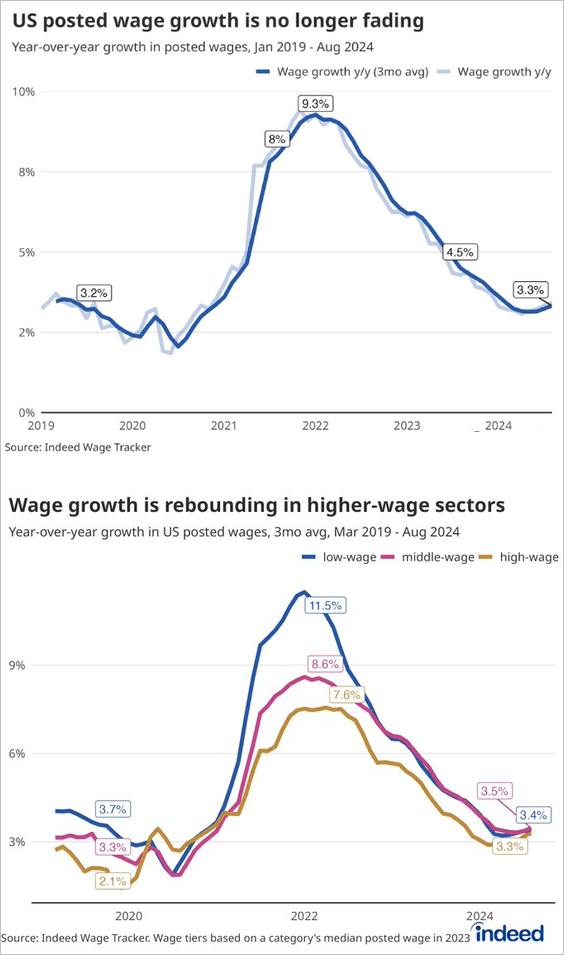 10) According to job postings on Indeed, US wage growth is no longer declining:
