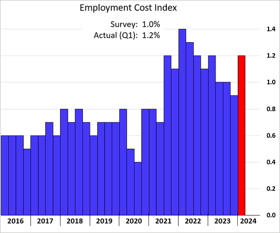 2) The index that keeps track of how much it costs companies to pay their workers in the US — the Employment Cost Index — has risen faster than most experts expected it: