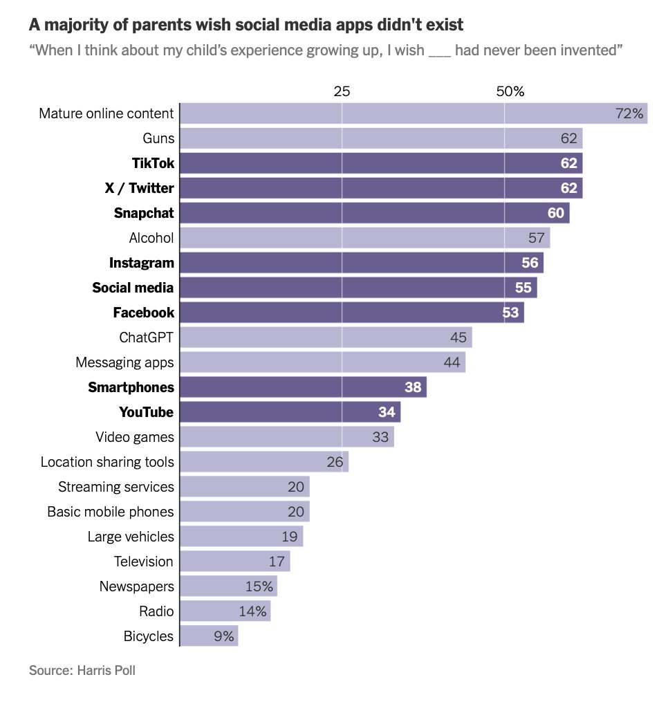 17) A majority of parents wish social media apps didn't exist. A few detest bicycles, radio, and newspapers: