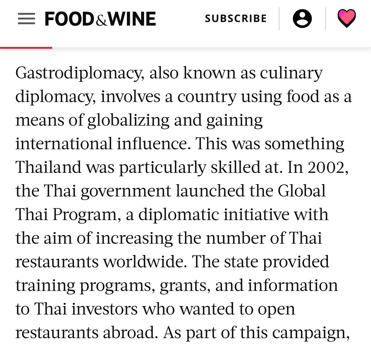 13) Fun political sociology fact: The Thai government subsidizes Thai restaurants in the US as a form of pro-Thailand propaganda: