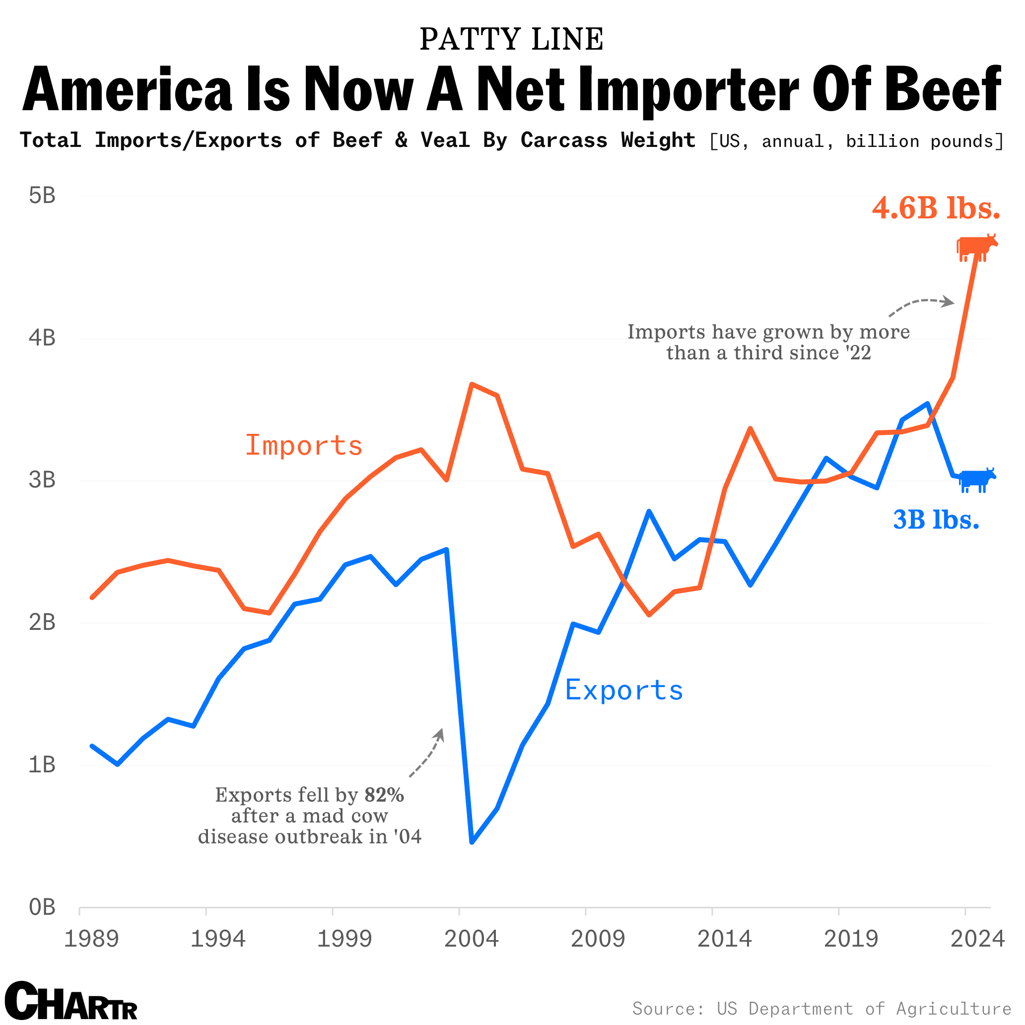 9) Against a backdrop of international tariffs, including significant agricultural import taxes, America is facing a beef deficit: