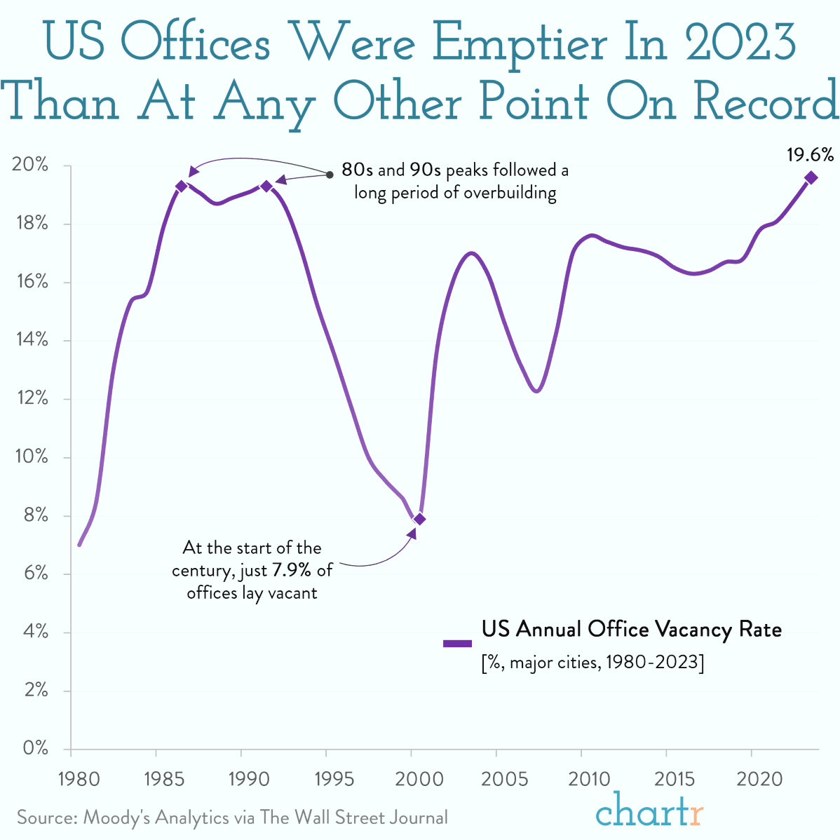 1) Nearly 20% of all office space across major US cities was unleased at the end of 2023, a higher share than any previous year on record.