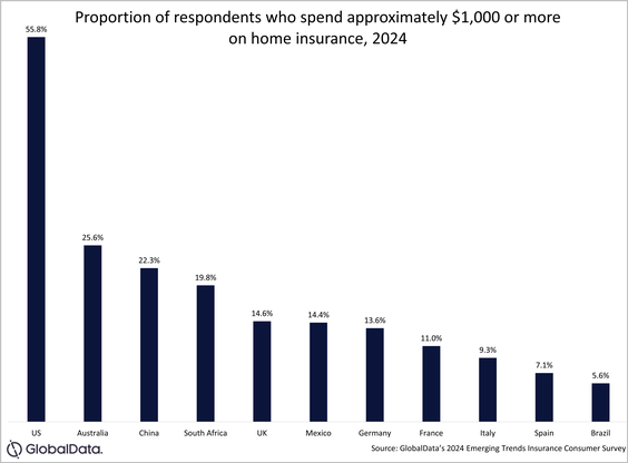 7) Share of respondents spending $1,000 or more on home insurance by country:
