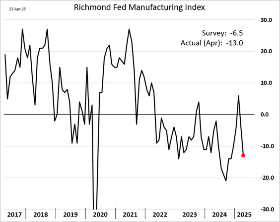 5) The Richmond Fed's regional manufacturing index registered a sharp pullback this month: