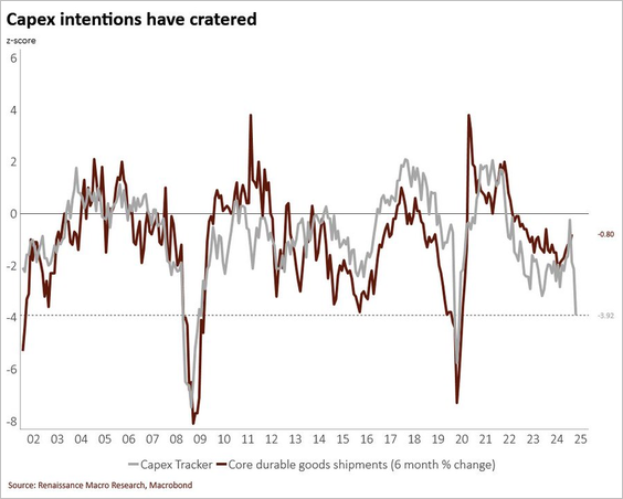 6) At the national level, capital spending intentions have collapsed to their weakest level since early 2020, signaling a sharp deterioration in business investment sentiment: