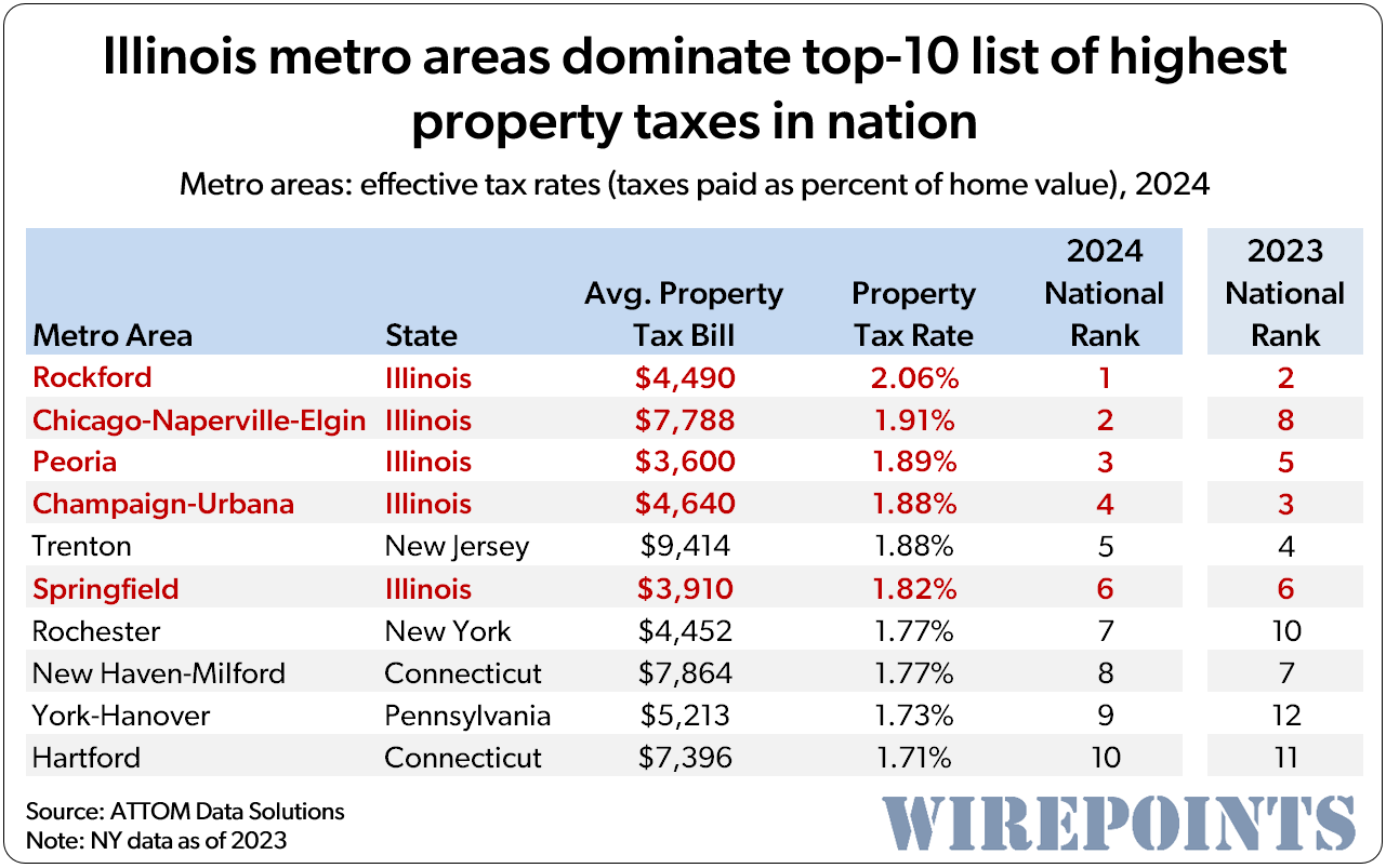 9) Illinois metro areas take the top four spots for nation's highest property taxes: