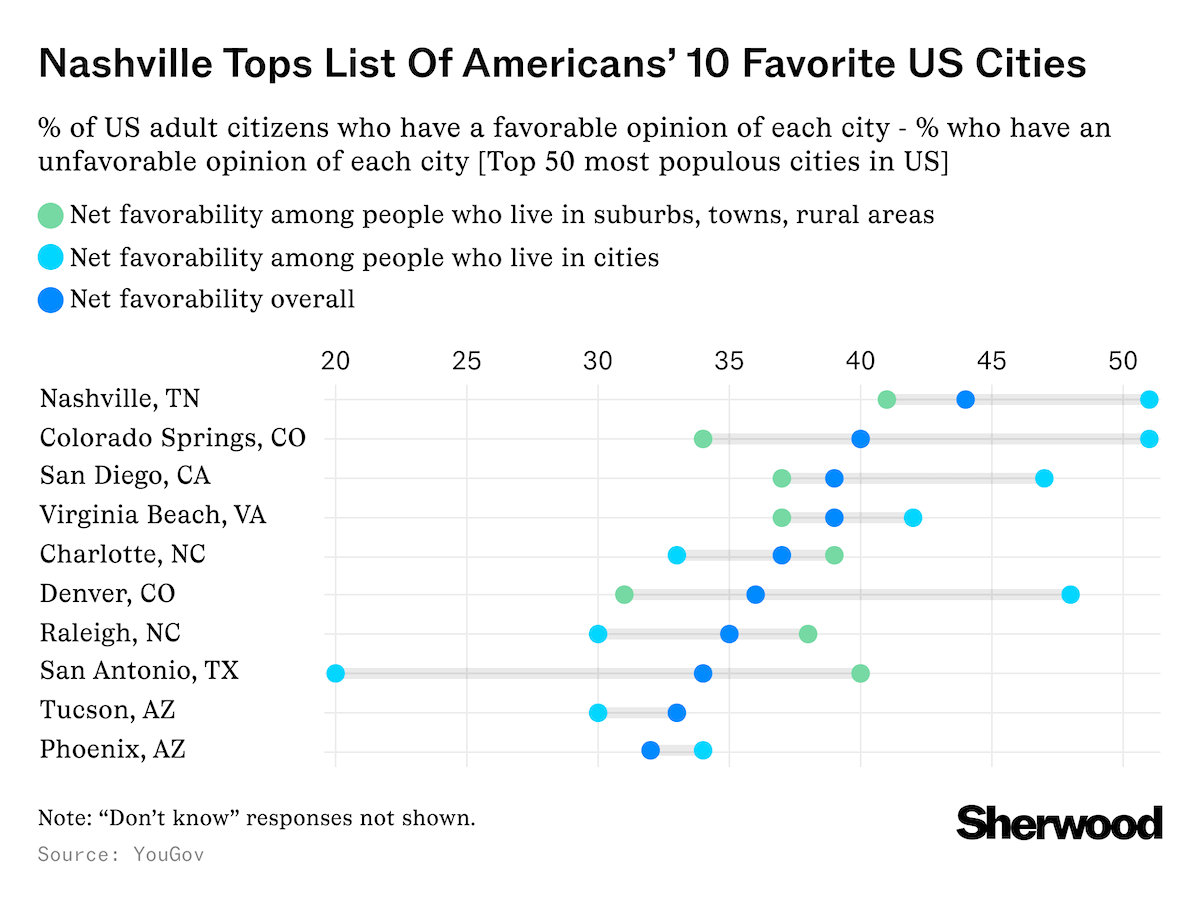 8) The capital of Tennessee was named the city that Americans view most favorably out of the top 50 most populous US cities: