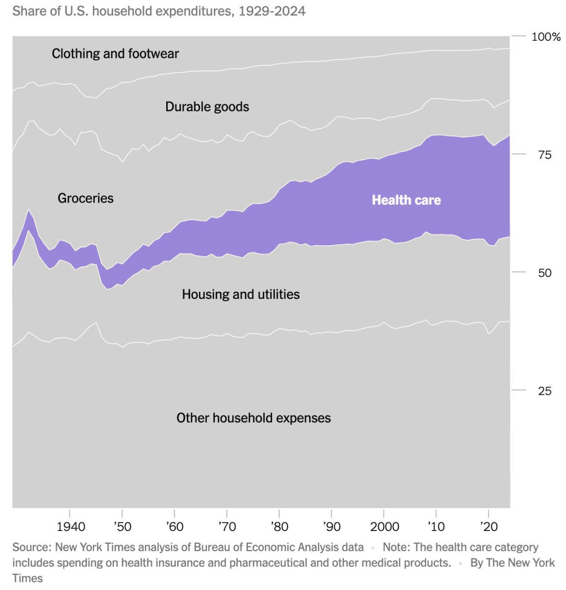 17) Americans now spend more on health care than on housing or food: