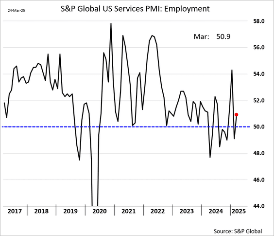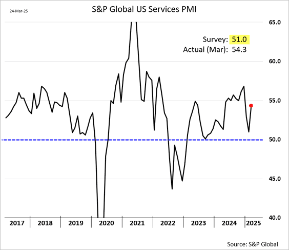 14) The services PMI indicator showed an acceleration in activity this month (fueled in part by warmer weather), easing concerns about an economic slowdown: