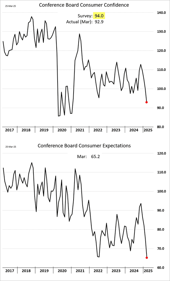 11) US consumer confidence deteriorated further this month, according to the Conference Board's survey: