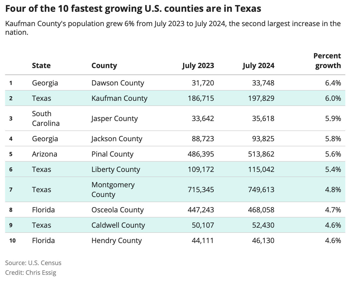 10) Four of the 10 fastest growing U.S. counties are in Texas:
