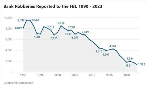 10) Bank robberies over time: