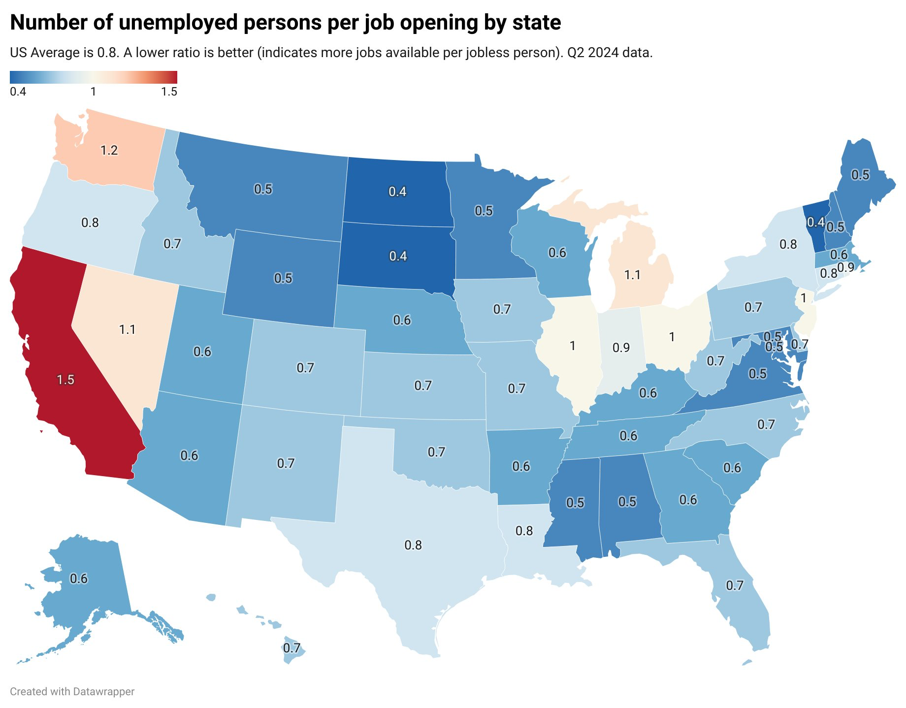 9) Number of unemployed persons per job opening by state:
