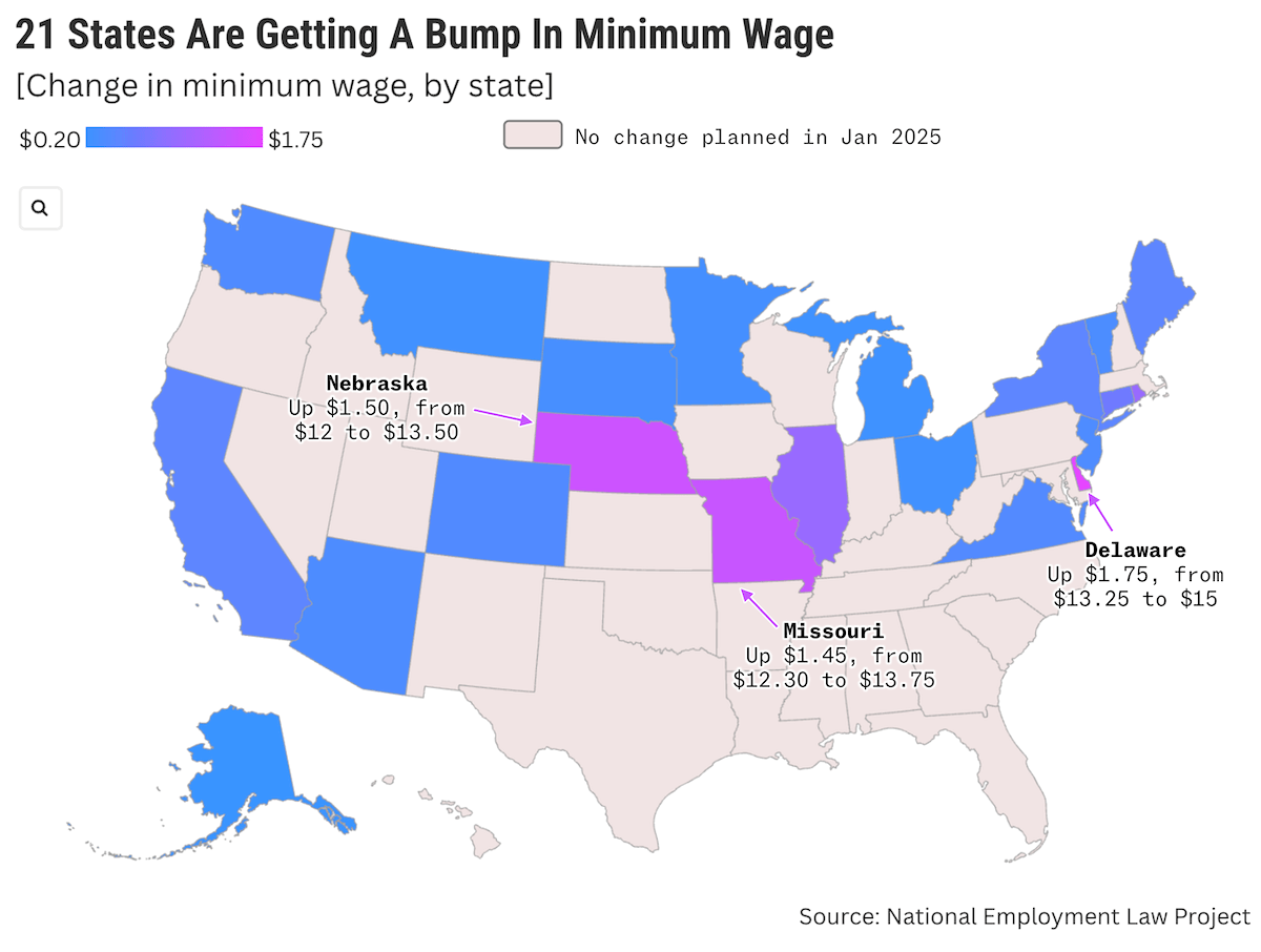 9) States where the minimum wage increased in 2025: