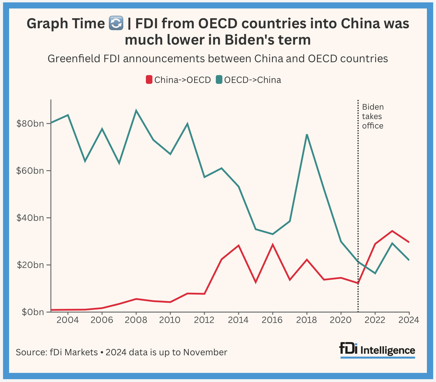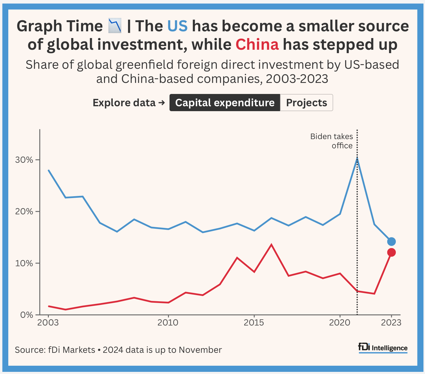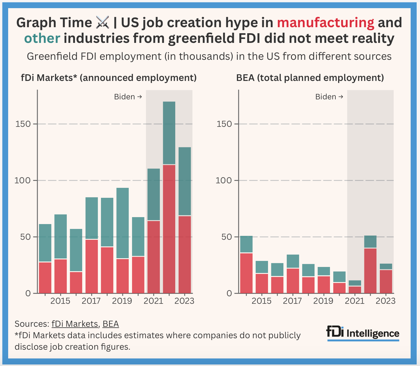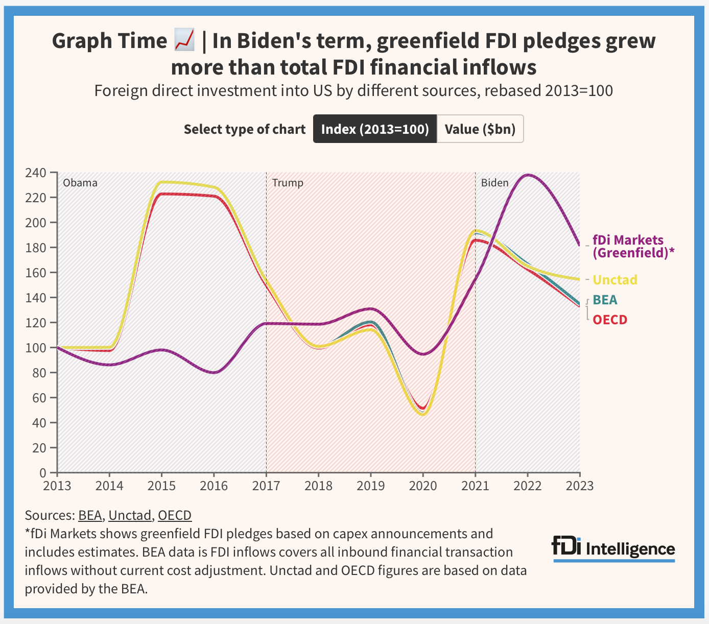 3) The departing President's impact was more hype than reality. Joe Biden's FDI legacy in five charts: