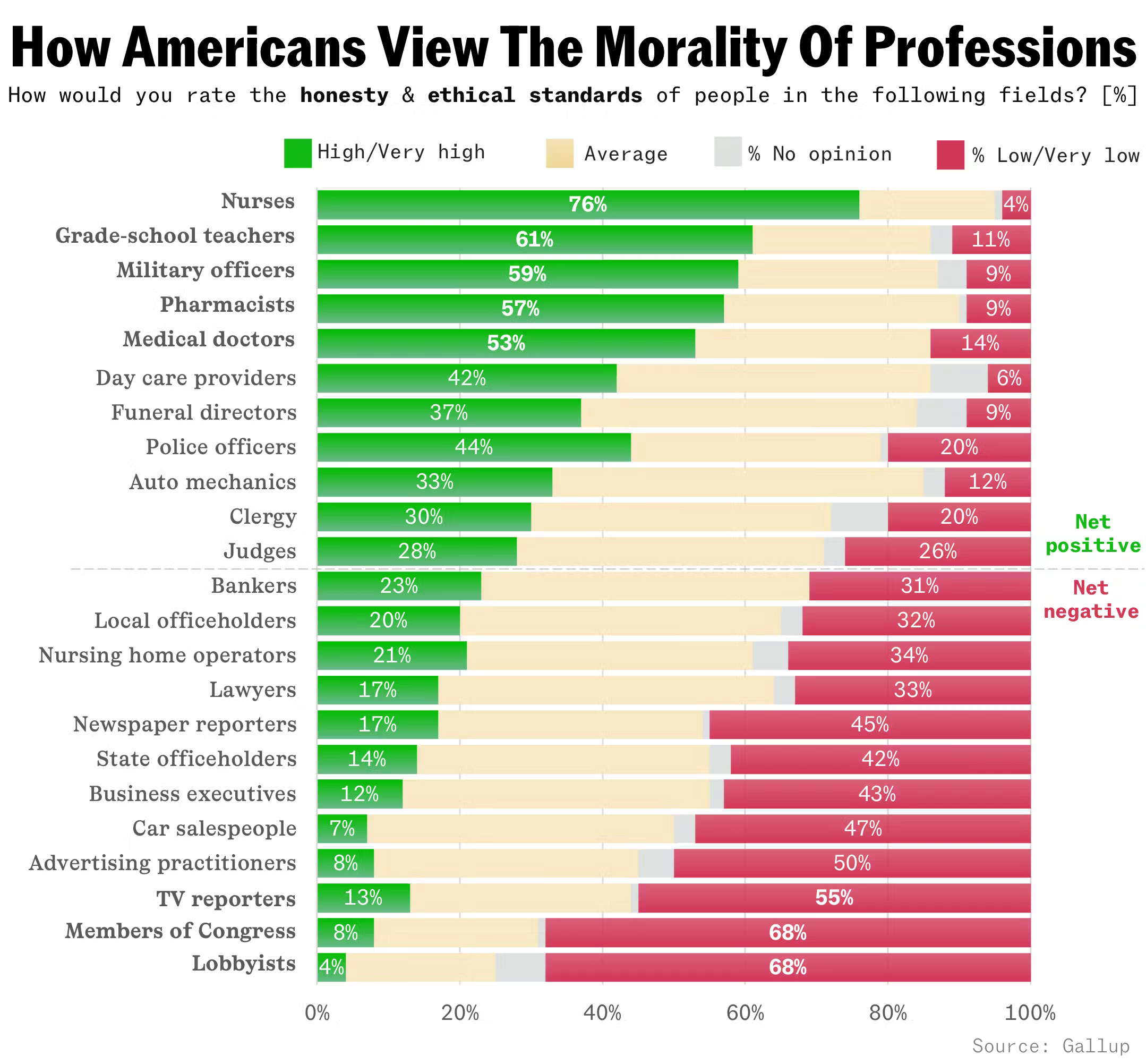 7) How Americans view the honesty & ethical standards of people in the following fields: