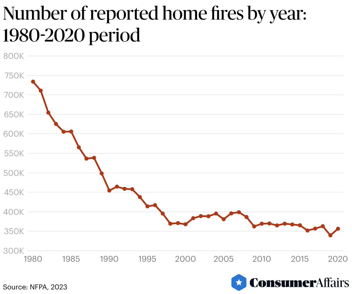 4) Reported home fires by year, 1980-2020: