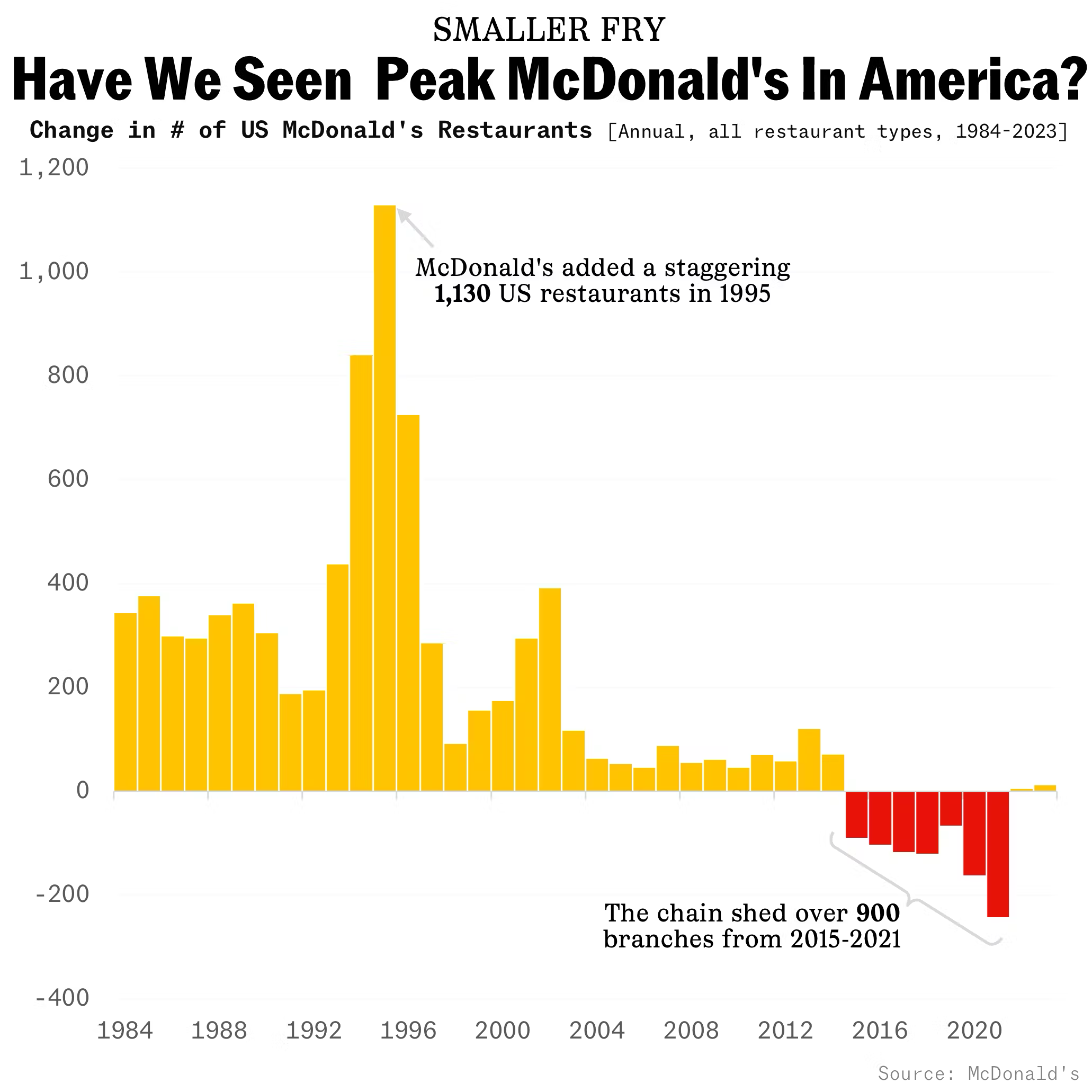 8) Though it may not feel like it, McDonald's has been closing stores, with the 85-year-old chain's restaurant tally stalling in recent years.