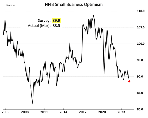 2) It's important to recognize that other small business surveys appear less pessimistic, partially because NFIB members often represent very small companies.