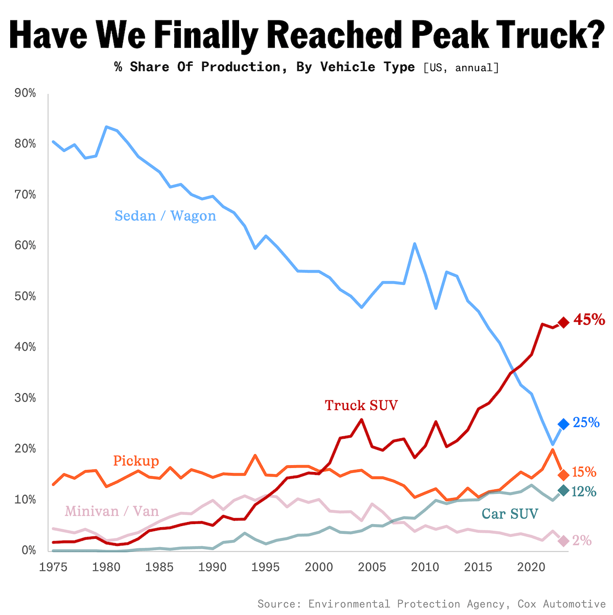 8) With the average price of a new truck hovering around $60,000, compared to $39,233 for cars, the bang for your truck buck just doesn't quite cut it like it used to for inflation-weary consumers.