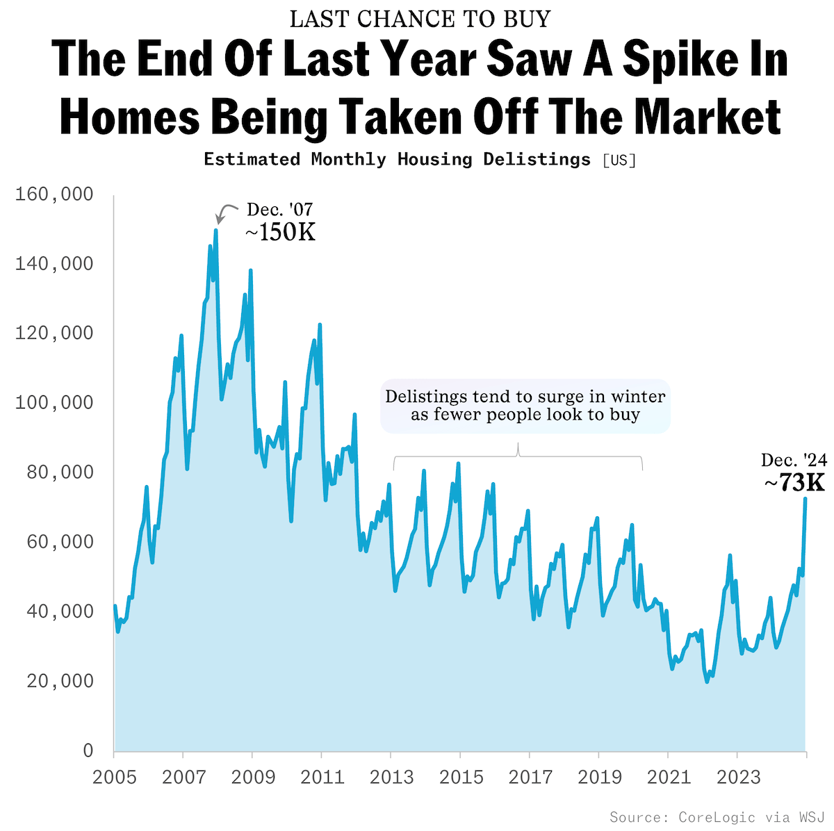 7) Typically, you'd think more homes being taken off the market is good news for real estate agents and analysts... But, with a surplus of new homes for sale and a shortage of buyers, US properties are increasingly being delisted to be moved on from, rather than moved into.