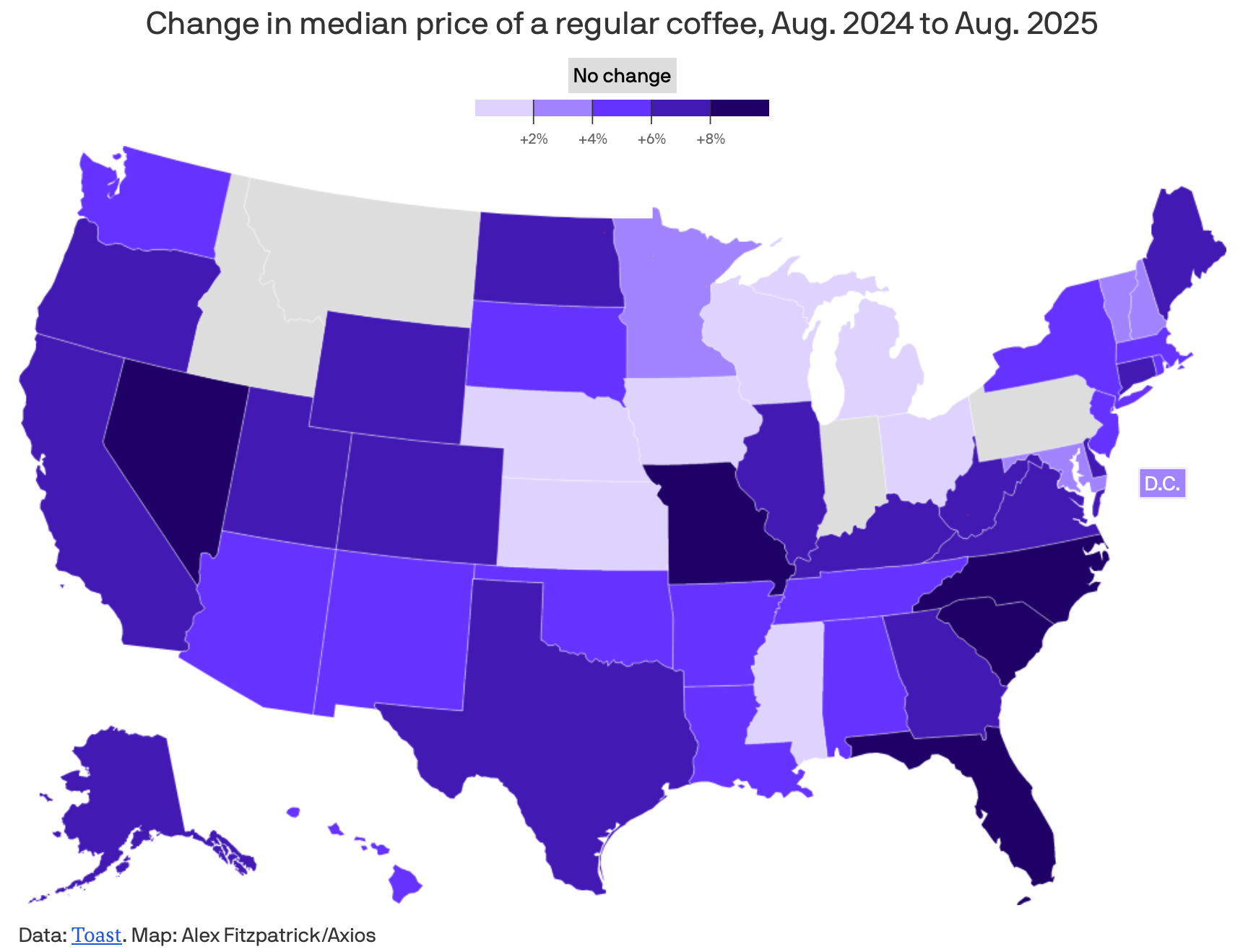 10) Where coffee prices are rising the most: Hot coffee prices rose the most in South Carolina (+9.6%), Nevada (+9.0%) and Florida (+8.3%). They stayed flat in a handful of states, including Idaho, Indiana, Montana and Pennsylvania.