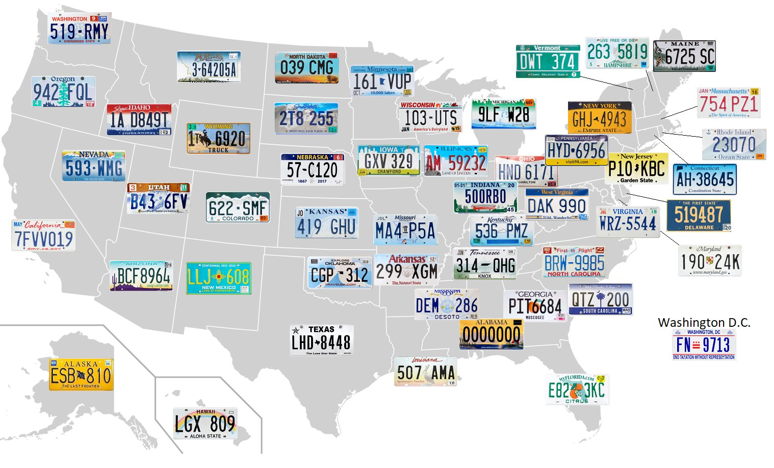 9) License plates, by state: