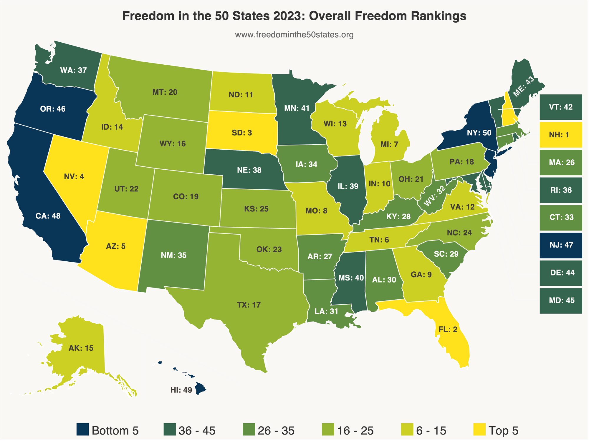 5) Freedom in the 50 states: The overall freedom ranking is a combination of personal and economic freedoms. Based on more than 230 state and local public policies.