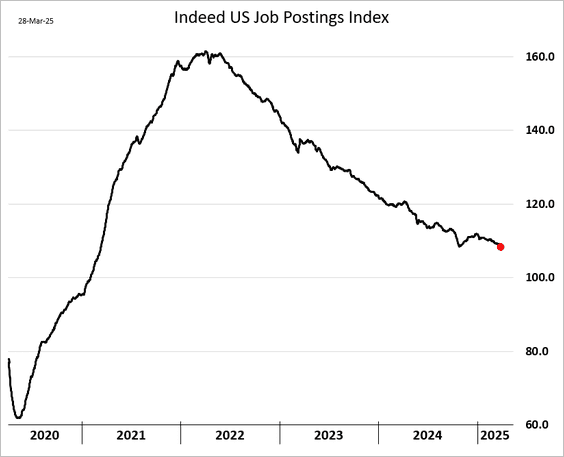 15) The index of job openings from Indeed continued to trend lower in March: