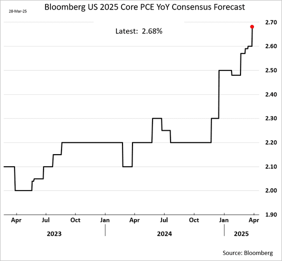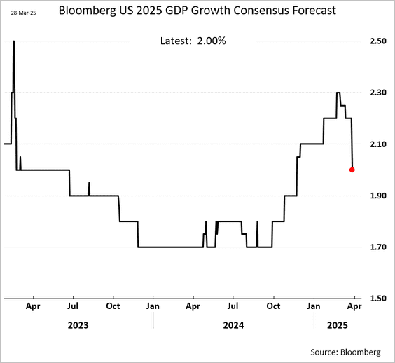 19) Economists have lowered their 2025 US growth forecast: