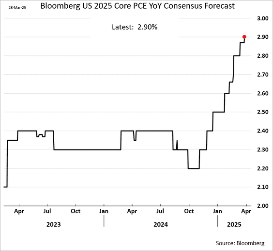 20) Economists once again increased their estimates for inflation this year: