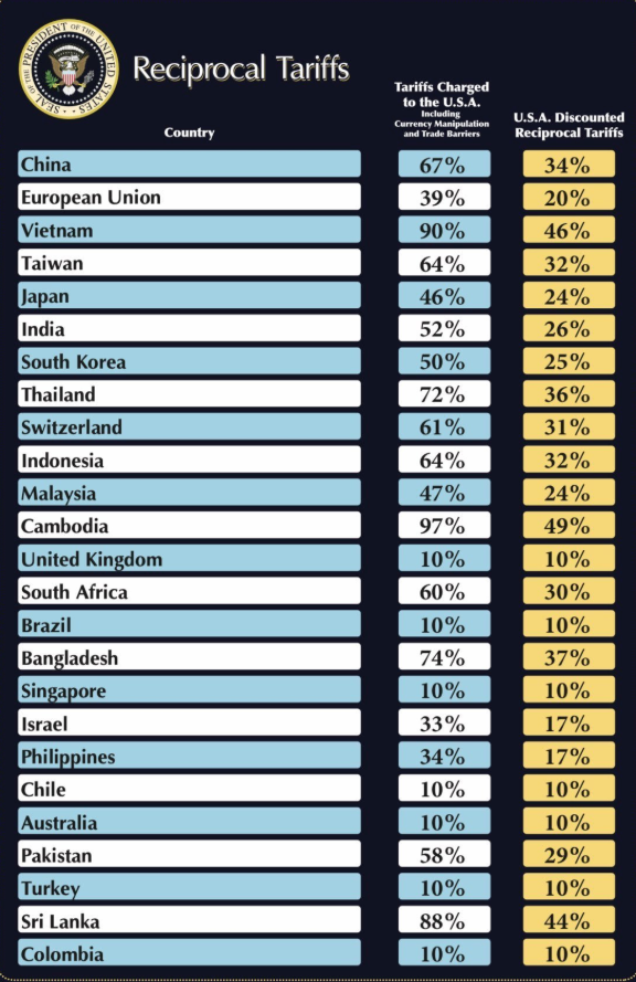 1) Trump's "Liberation Day" tariff's were announced yesterday.