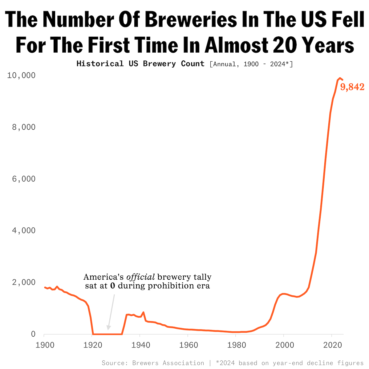 9) America’s brewery count dropped for the first time since 2005 last year: