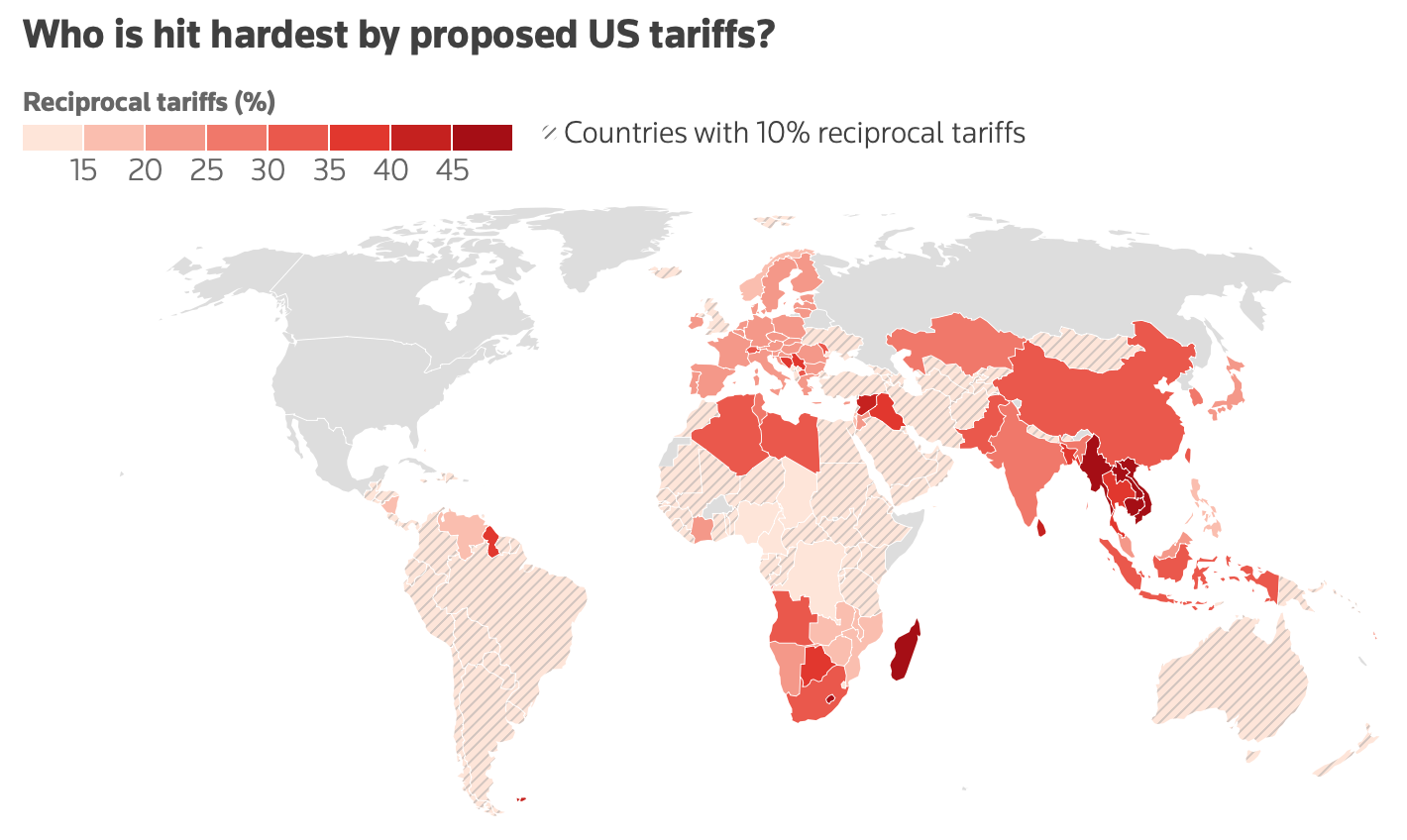 The new US tariffs introduce a universal 10% duty on all imports, effective April 5, 2025, with higher "reciprocal" tariffs targeting specific countries starting April 9, 2025. Asia and Europe were hit the hardest