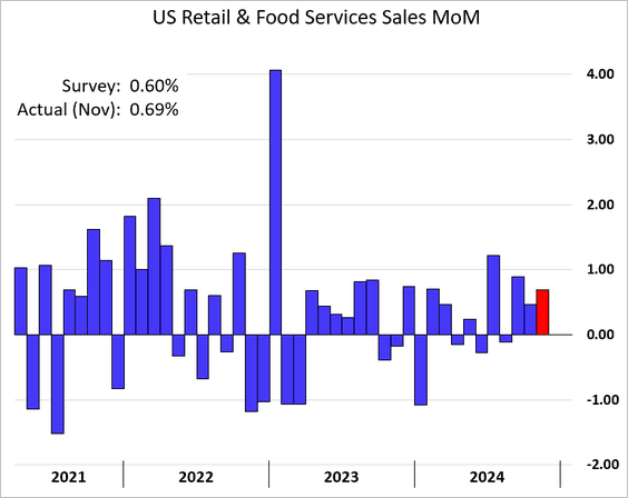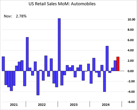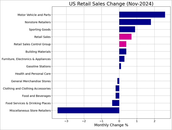 1) Last month's retail sales exceeded expectations, driven by strong vehicle and online sales: