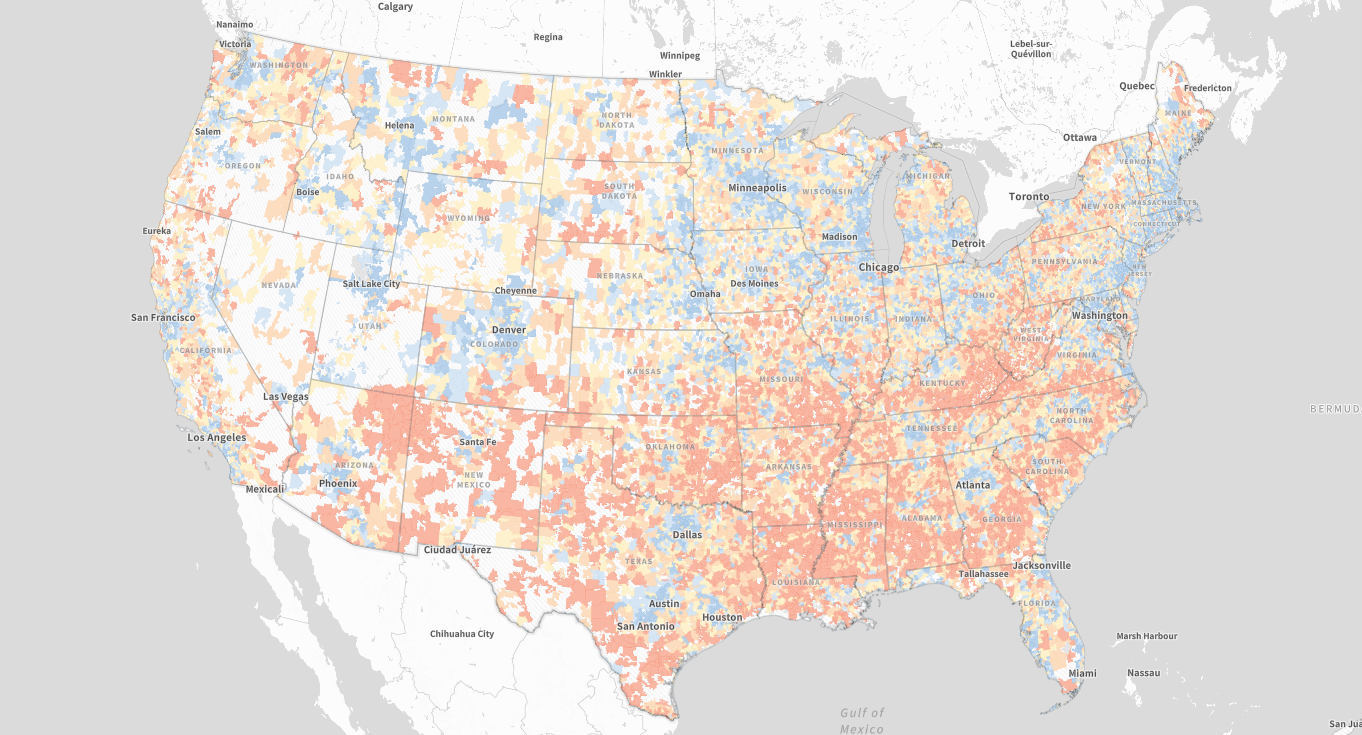 11) The U.S. is thriving overall, but prosperity isn't evenly shared: A ZIP code is more than an address: It's a predictor of economic opportunity, health, and longevity, making place one of the strongest determinants of life outcomes.