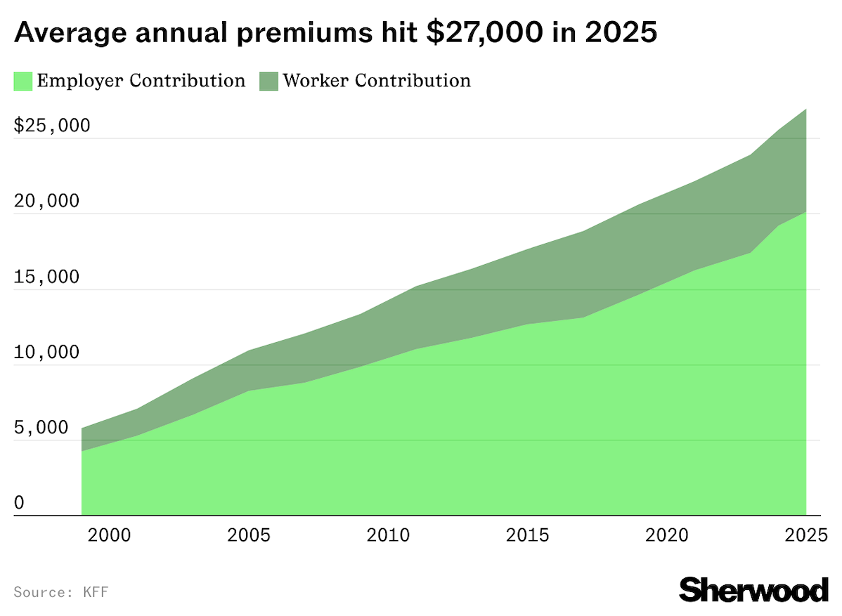 16) Premiums for employer-provided health insurance plans reached nearly $27,000 this year, and are expected to rise even more in 2026 as the cost of healthcare in America continues to tick up.