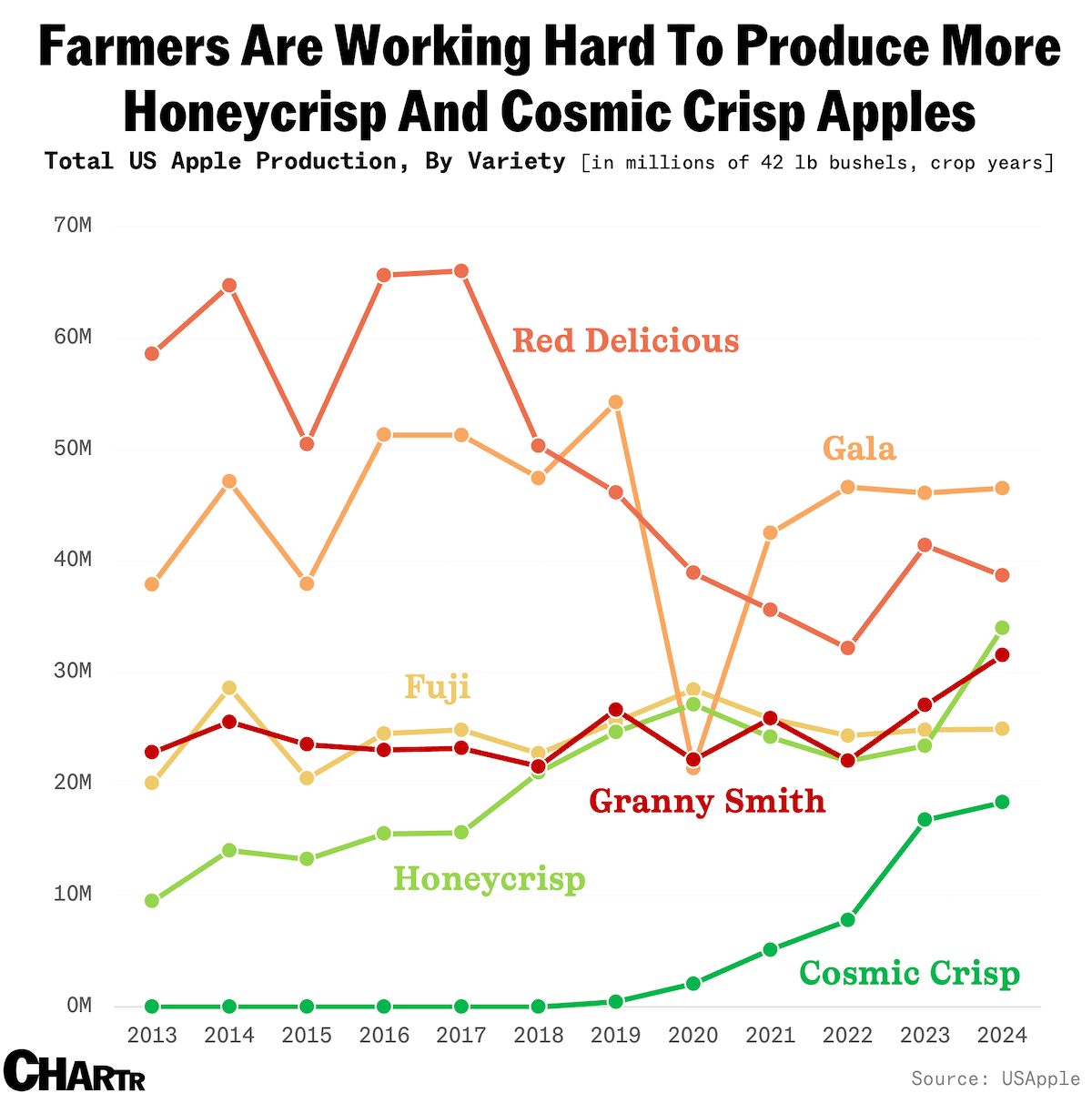 17) Total US apple production, by variety: