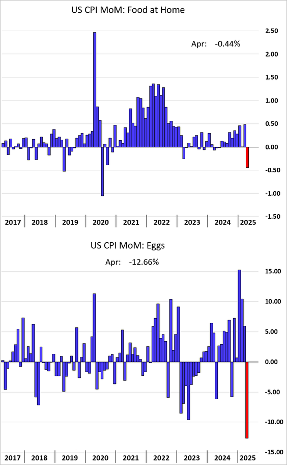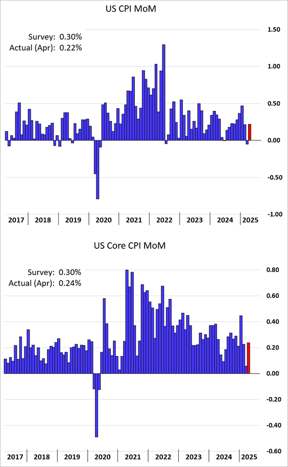 9) Inflation: The April CPI report came in softer than expected (that's a good thing):