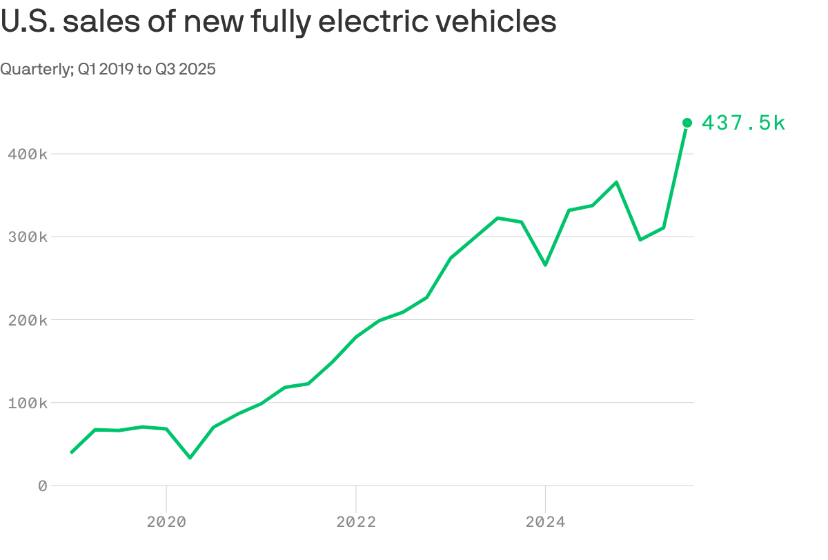 9) Sales of electric vehicles shattered previous records in the third quarter of this year, as consumers raced to take advantage of EV tax credits before they ended on Sept. 30:
