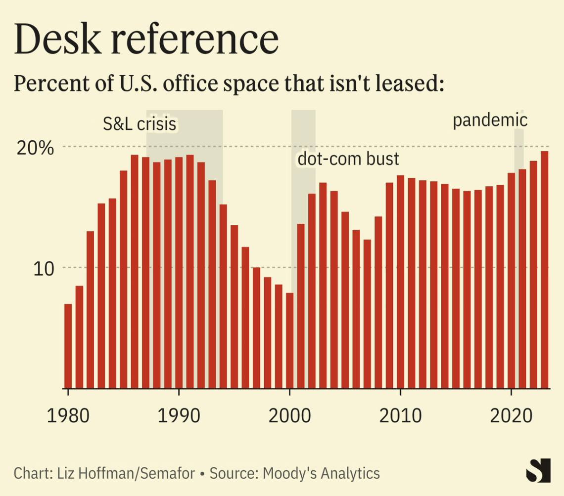 10) U.S. offices are as empty as they've been in at least 40 years: