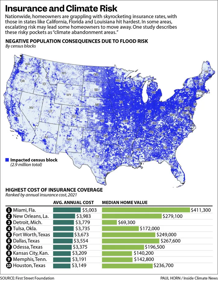 8) Insurance rates are soaring for us homeowners in climate danger zones: Research shows the soaring costs hint at widespread, unpriced risk as the global climate warms, with states like California, Florida, and Louisiana hit hardest.