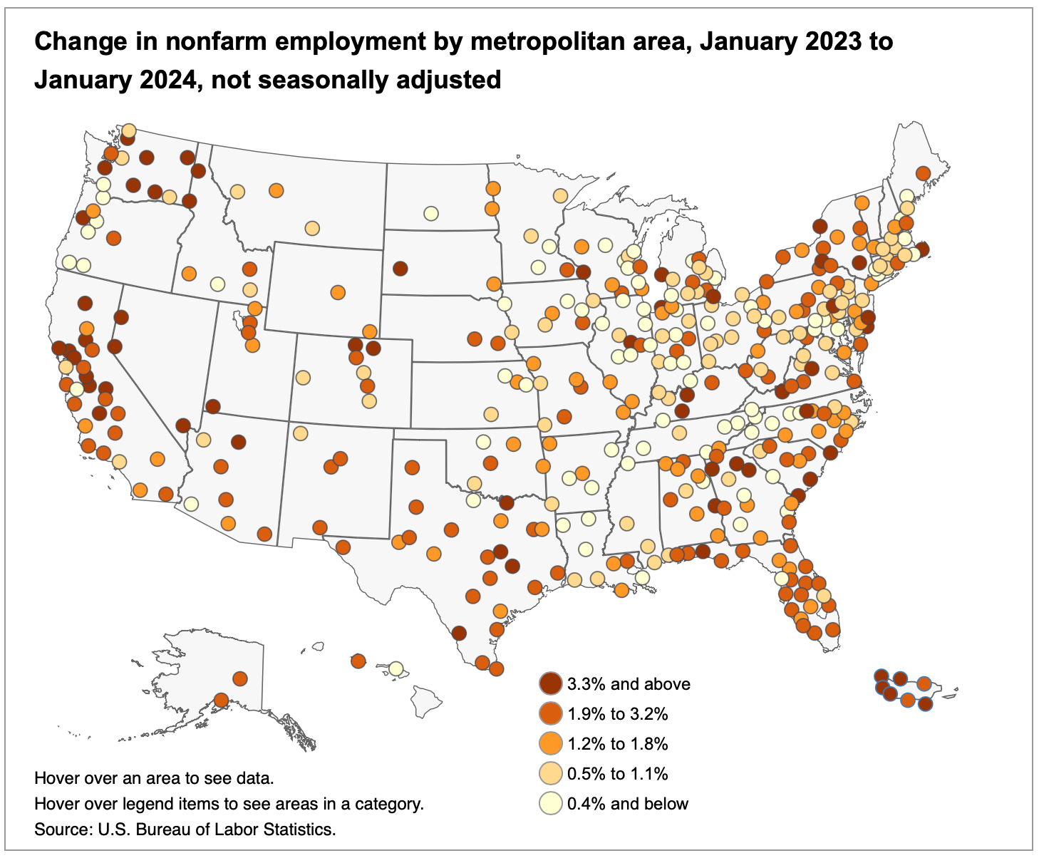 4) 2023's growth by metro from the BLS's Metropolitan Area Employment and Unemployment Summary.