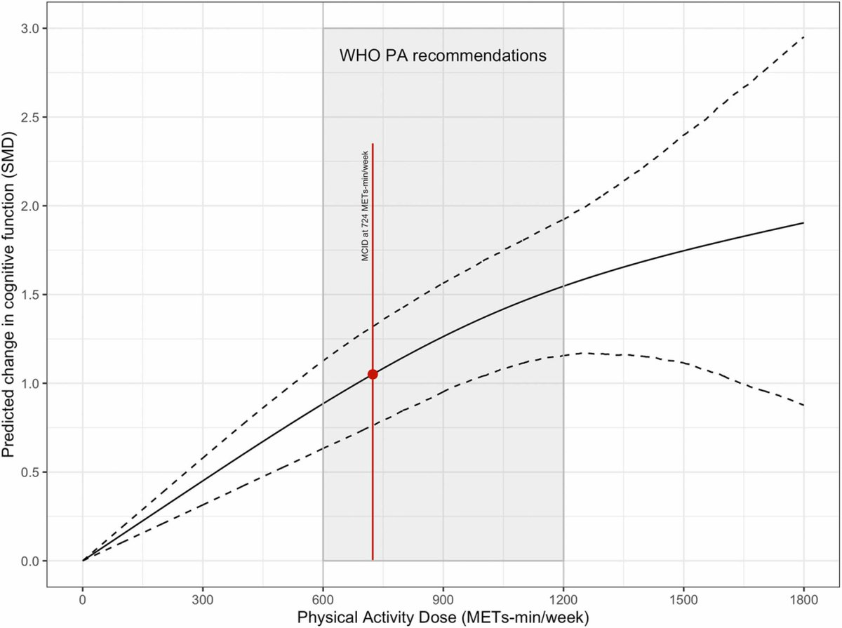 Scientists have found that moving your body can improve how well your brain works. To make a real difference in your thinking and memory, they recommend doing 724 MET-minutes of exercise each week. For example, if you enjoy brisk walking, which is about 5 METs, you'd need to walk for 145 minutes per week--just over 20 minutes a day if you do it every day!