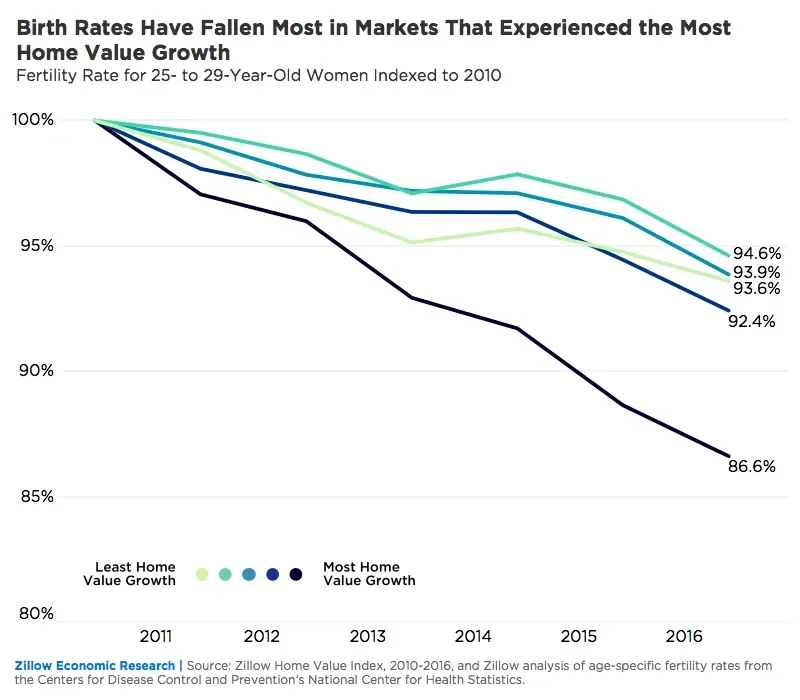 4) Do housing prices have an impact on birth rates? Looks like it: